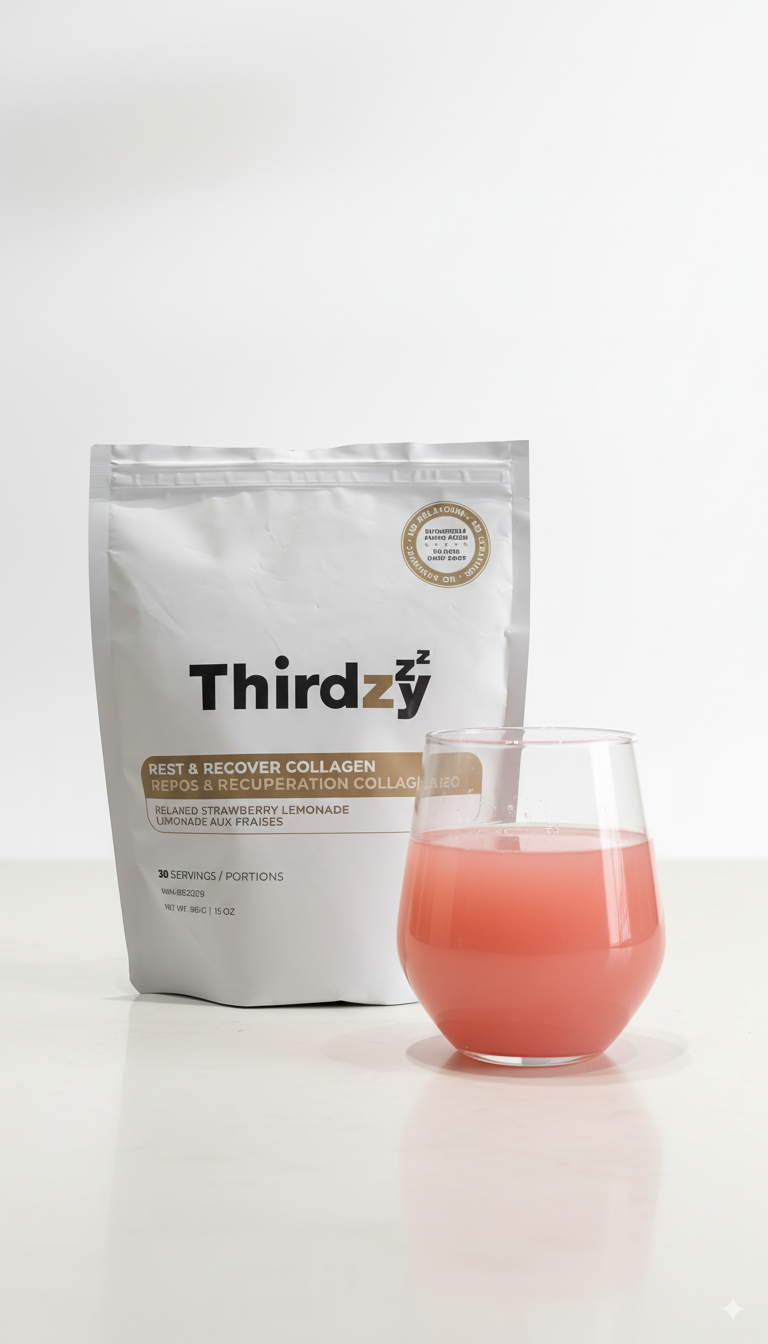 The first is Thirdzy, a powder that is mixed with water and I take about 30 minutes before bed. It contains 3 ingredients: